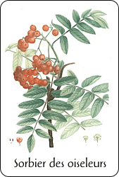- Cormier ou Sorbier domestique (Sorbus domestica), famille des Rosacées. Arbre dont les fruits – les cormes – ressemblent à de petites pommes ou poires, d’où leur surnom de poirillons.